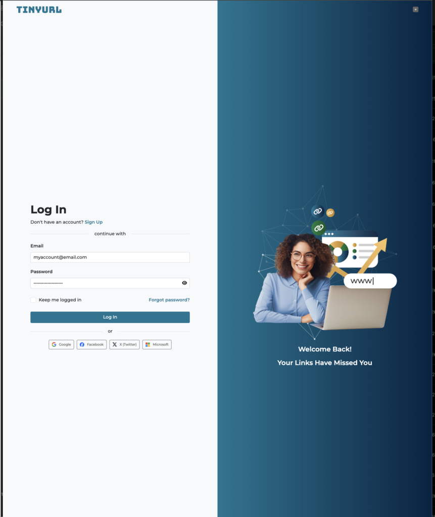 - Log in or Sign-up to your TinyURL account.