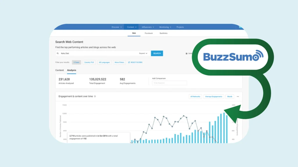 - Content Discovery and Trends: BuzzSumo allows users to discover the most shared content across social media platforms within any specific topic area, helping them to identify trending subjects and inspire their content strategy.